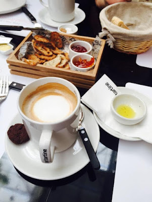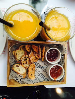 Not to forget the butter and jam (strawberry and apricote) served with crispy tasty bread. You also get to have 1 hot drink (we go for the café latte) and 1 fresh orange juice.
