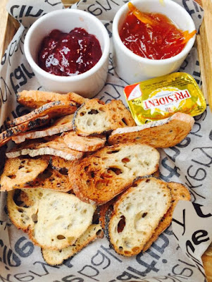 Not to forget the butter and jam (strawberry and apricote) served with crispy tasty bread. You also get to have 1 hot drink (we go for the café latte) and 1 fresh orange juice.
